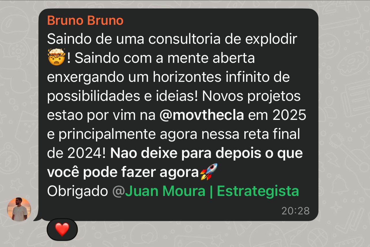 Receba uma consultoria com Juan Moura para entender o seu momento, montar um plano rápido e direcionamento completo de como implementar o marketing digital na sua operação de vendas